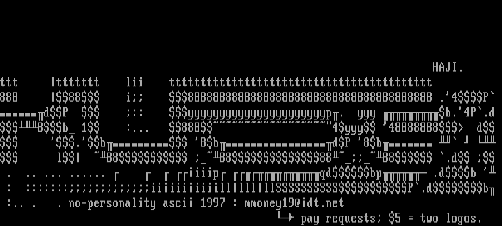 :.. . . no-personality ascii 1997 : mmoney19@idt.net