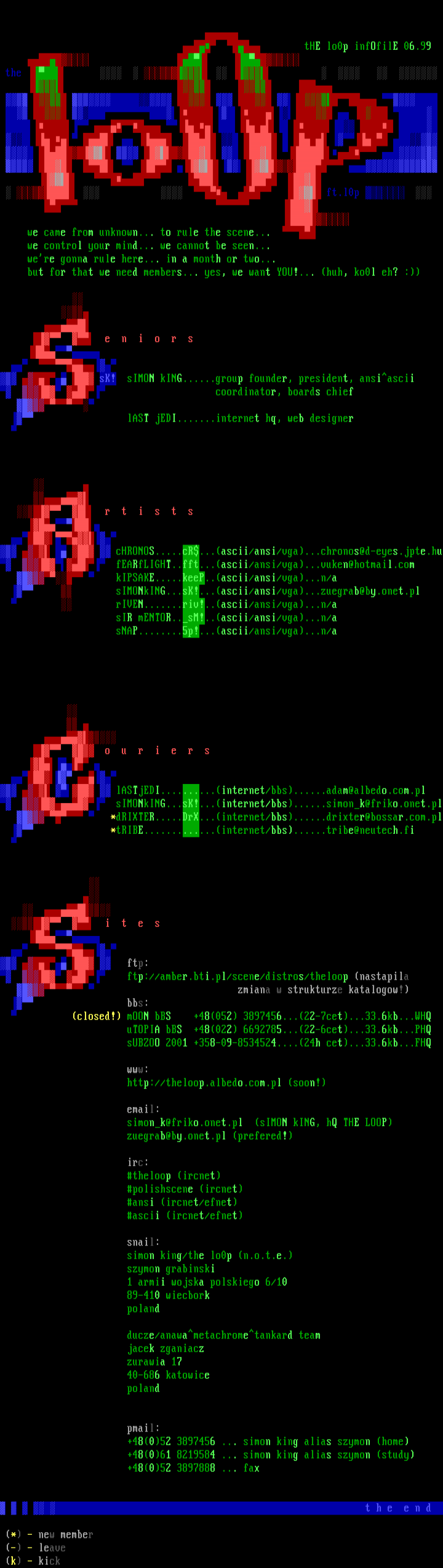 sIMONkING...sK!...internet/bbs......simonk@friko.onet.pl *dRIXTER.....DrX...internet/bbs......drixter@bossar.com.pl *tRIBE.............internet/bbs......tribe@neutech.fi