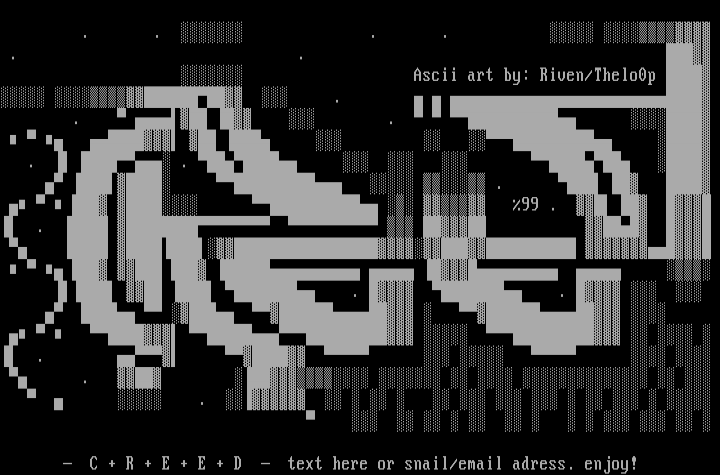 C + R + E + E + D text here or snail/email adress. enjoy!