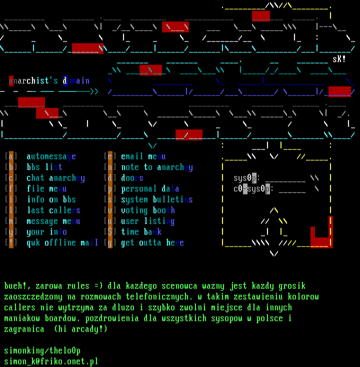 c chat anarchey d doors sys0p: