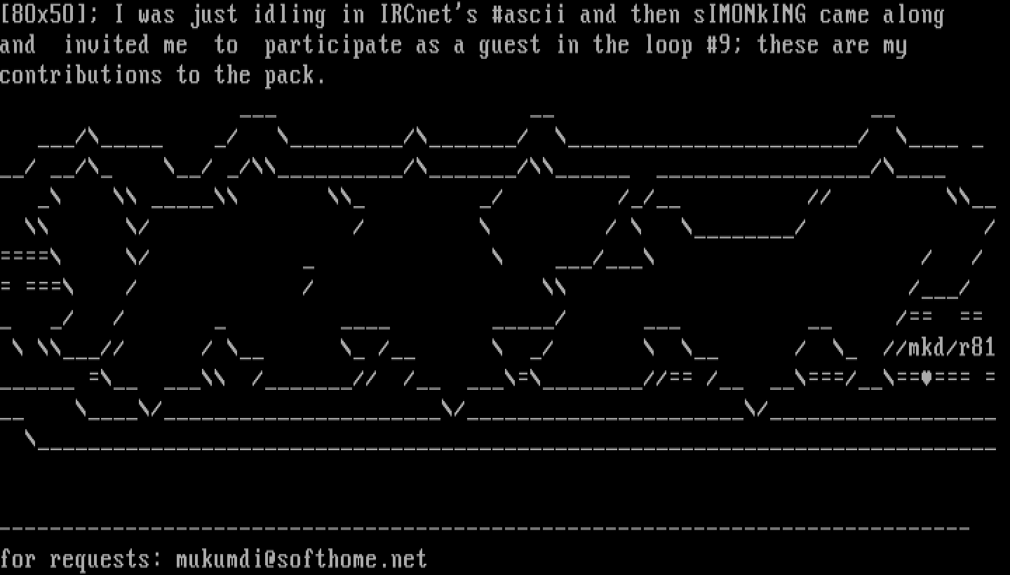 8Ox5O I was just idling in IRCnets ascii and then sIMONkING came along