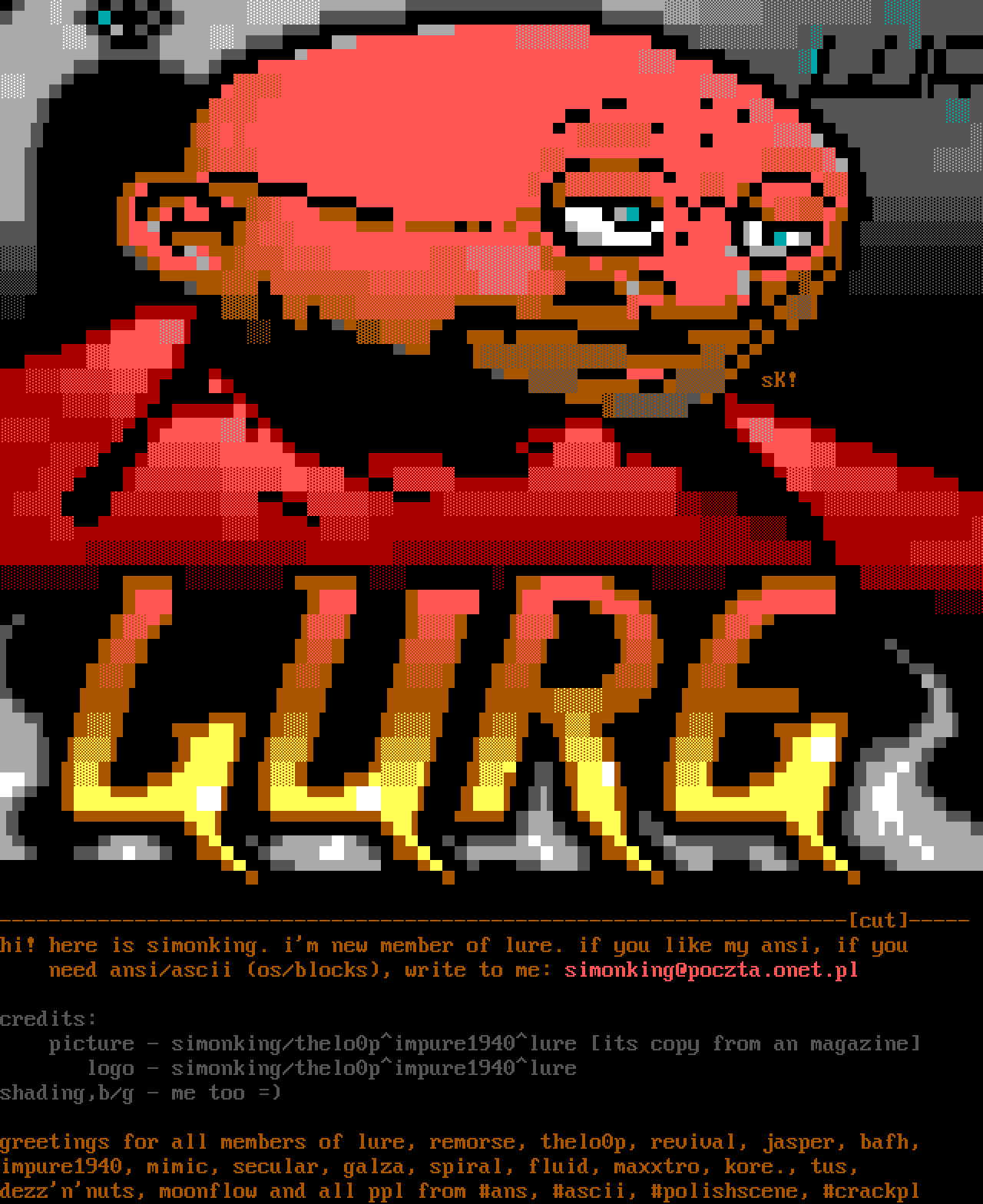 ---------------------------------------------------------------------cut----- hi! here is simonking. im new member of lure. if you like my ansi, if you