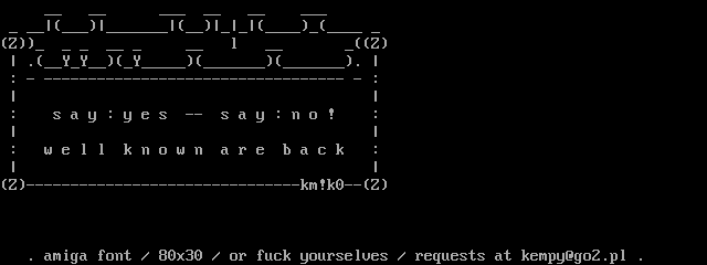 . amiga font / 80x30 / or fuck yourselves / requests at kempy@go2.pl .