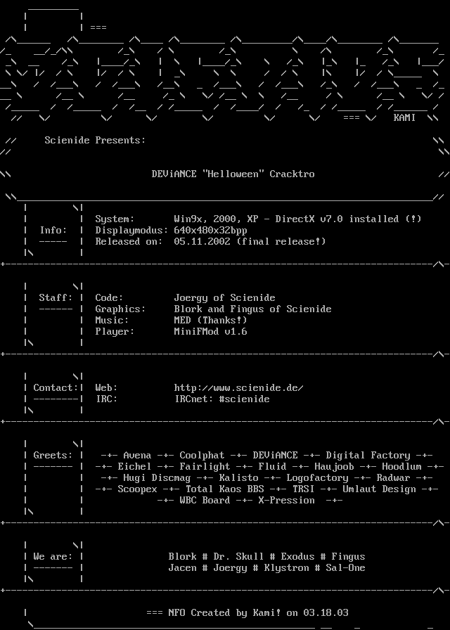 -+- Scoopex -+- Total Kaos BBS -+- TRSI -+- Umlaut Design -+-