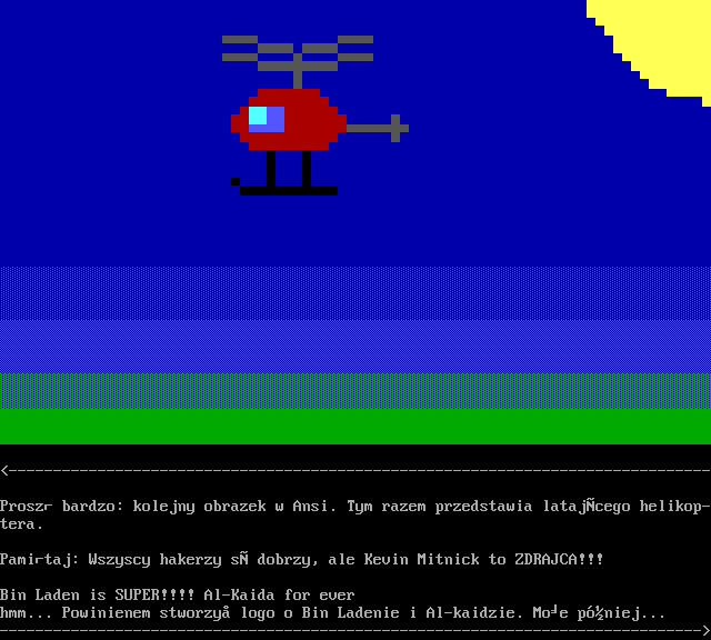 Prosz bardzo: kolejny obrazek w Ansi. Tym razem przedstawia latajcego helikop-tera.
