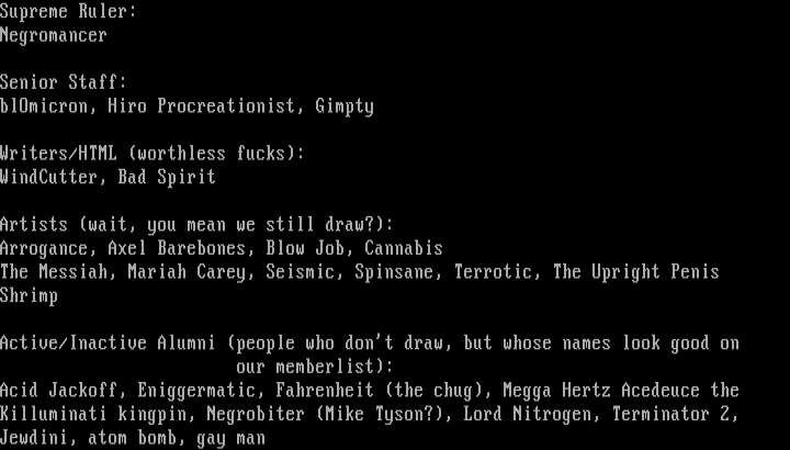 Killuminati kingpin, Negrobiter Mike Tyson?, Lord Nitrogen, Terminator 2,