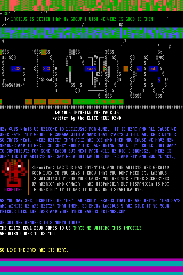WHAT THE TOP ARTISTS ARE SAYING ABOUT LACIDUS ON IRC AND FTP AND WWW TELNET.,