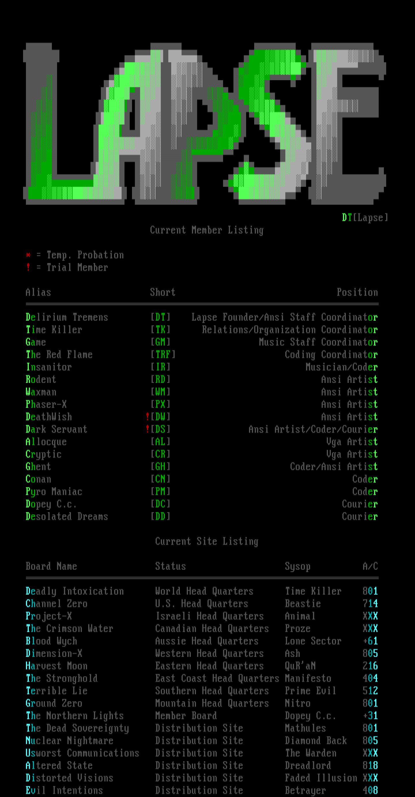 Delirium Tremens DT Lapse Founder/Ansi Staff Coordinator
