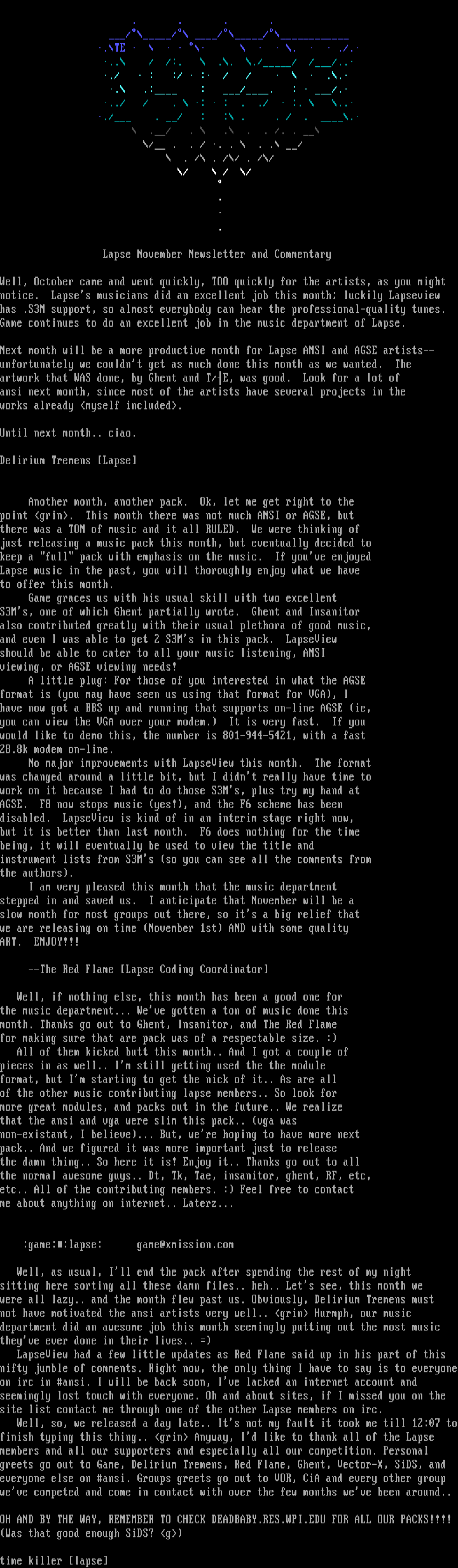 not have motivated the ansi artists very well.. grin Hurmph, our mus
