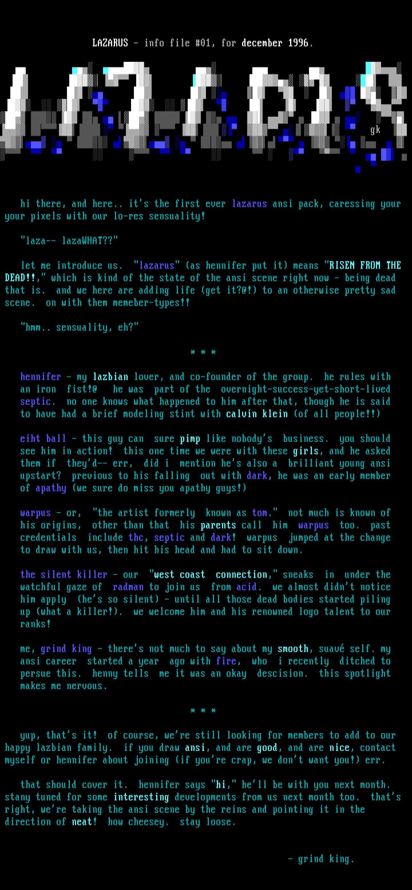 DEAD!!, which is kind of the state of the ansi scene right now - being dead