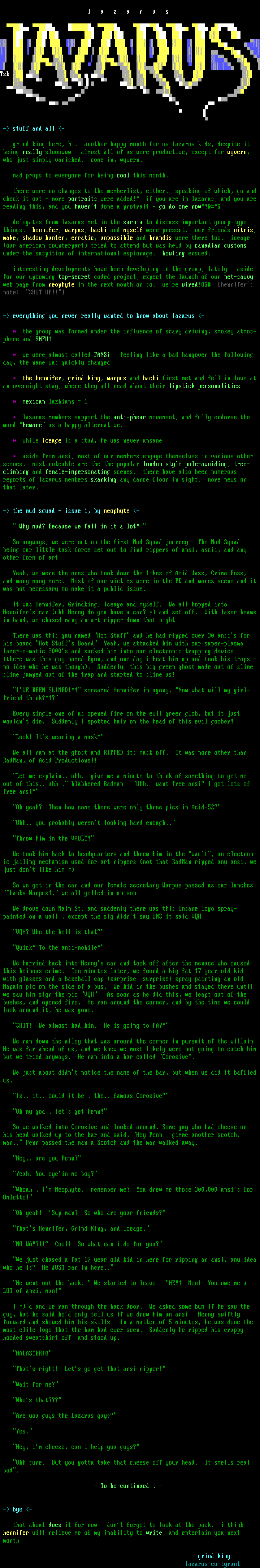 out of this.. uhh.. blabbered Radman. Uhh.. want free ansi? I got lots of