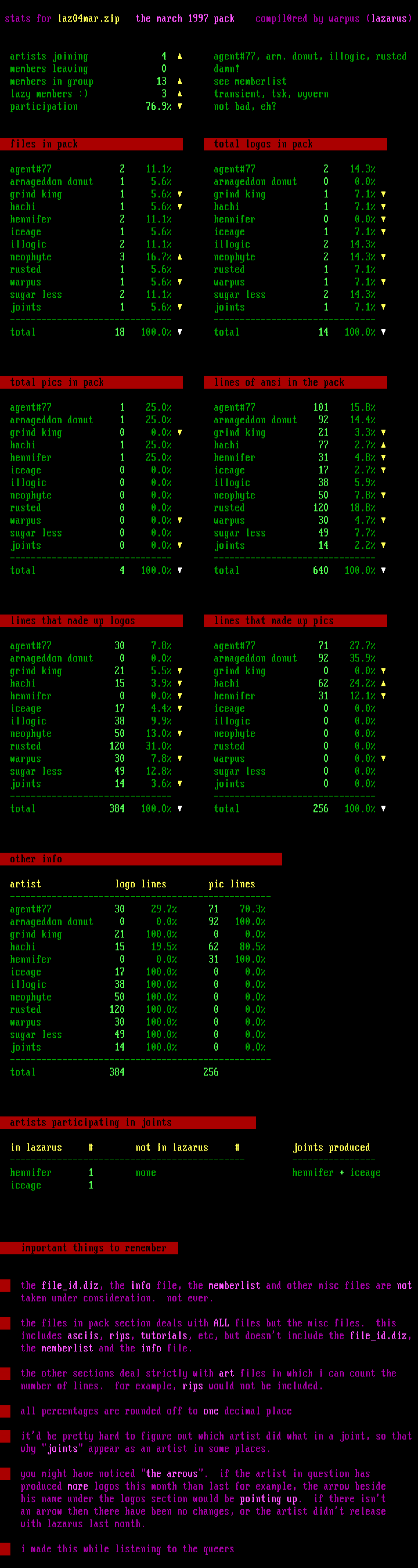 stats for laz04mar.zip the march 1997 pack compil0red by warpus lazarus