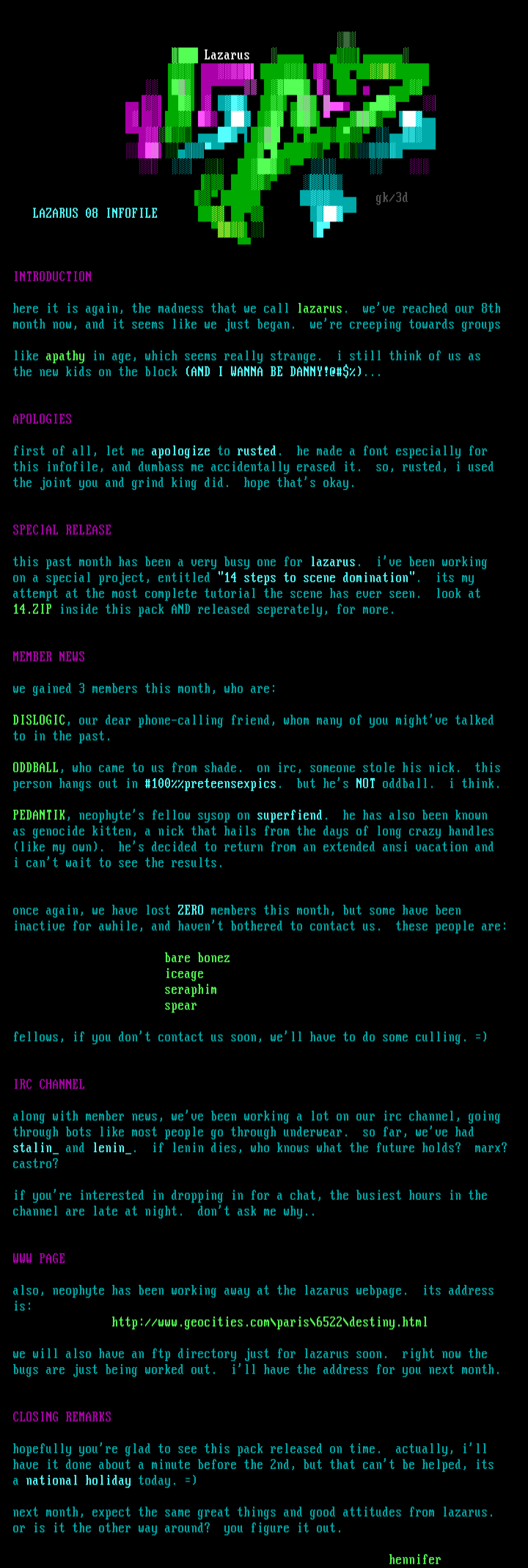 LAZARUS 08 INFOFILE
