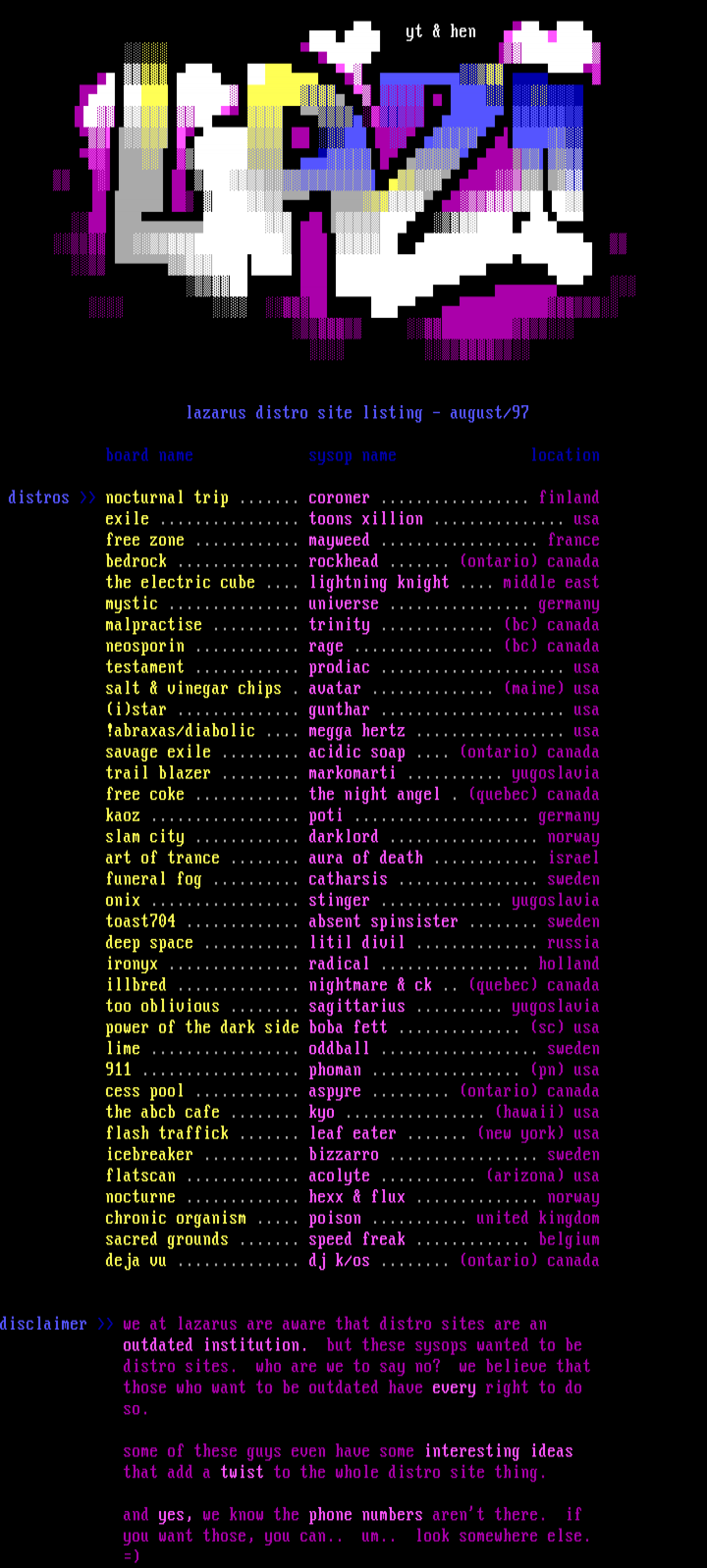 board name sysop name location