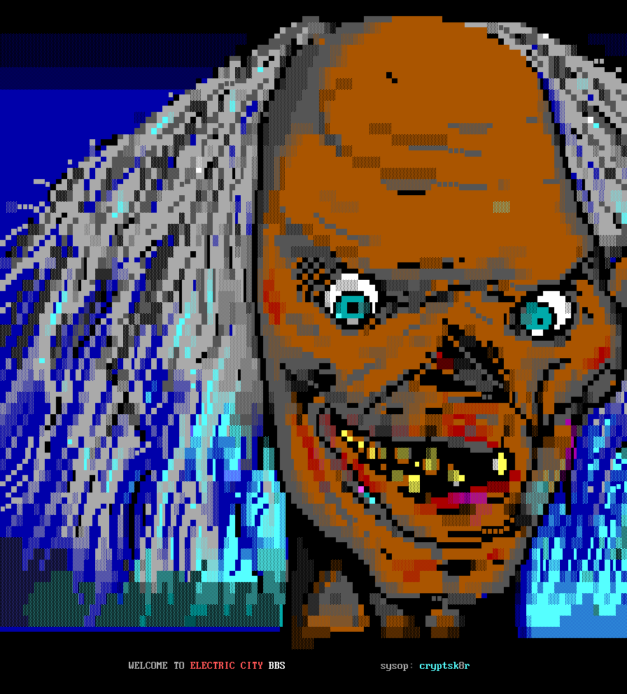 WELCOME TO ELECTRIC CITY BBS sysop: cryptsk8r