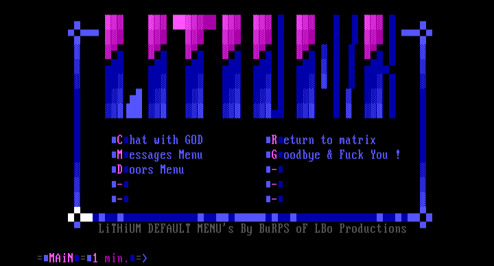 LiTHiUM DEFAULT MENUs By BuRPS oF LBo Productions