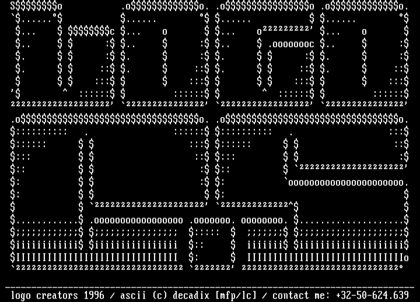 logo creators 1996 / ascii c decadix mfp/lc / contact me: +32-50-624.639