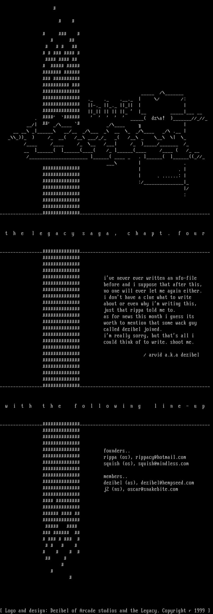 Logo and design: Dezibel of Arcade studios and the Legacy. Copyright 1999