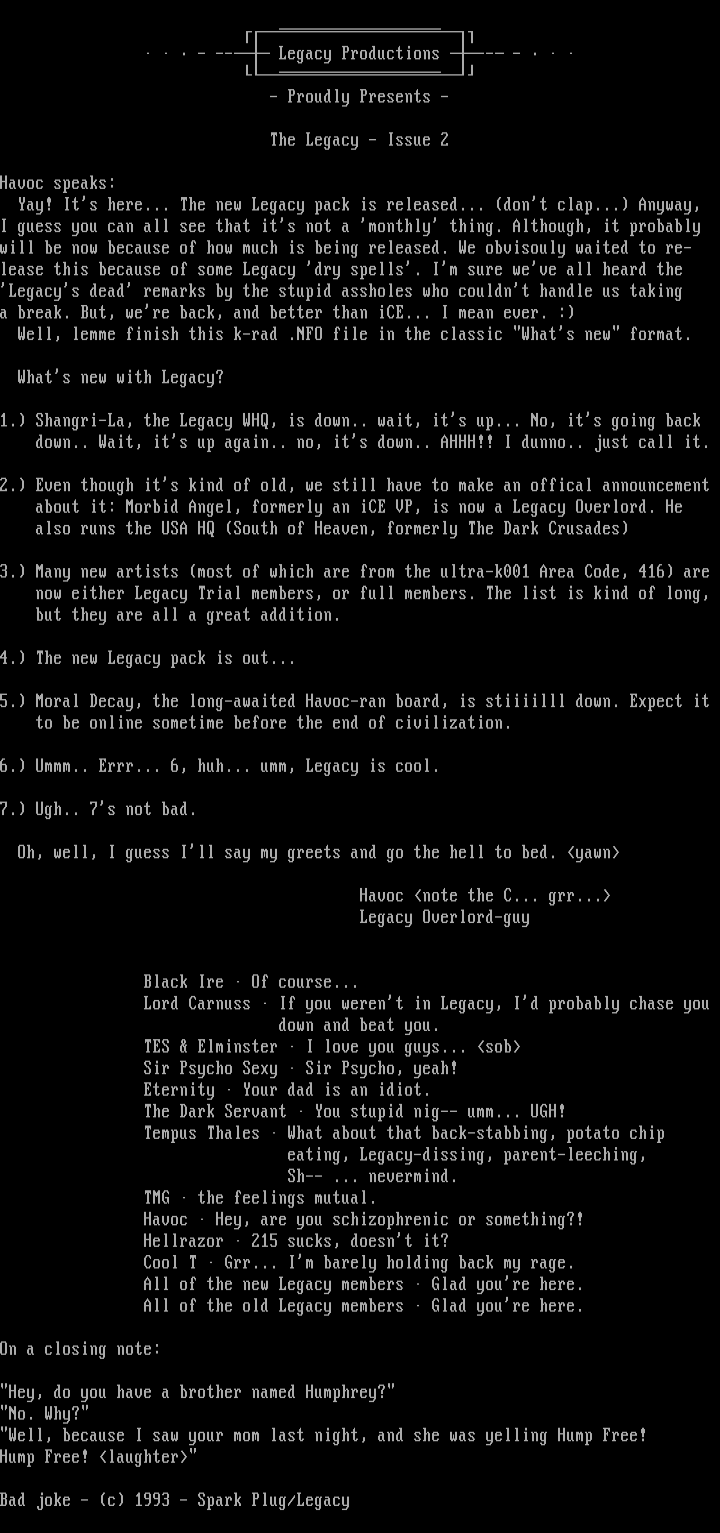 Legacys dead remarks by the stupid assholes who couldnt handle us taking