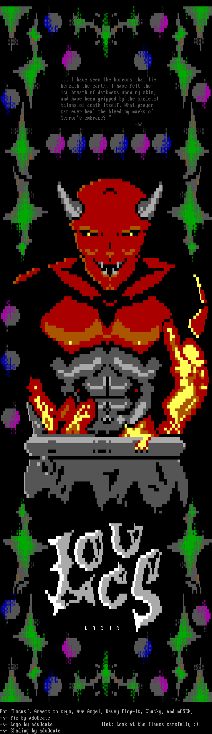 For Locus, Greetz to cryo, Ave Angel, Davey Flop-It, Chucky, and mOSEN,