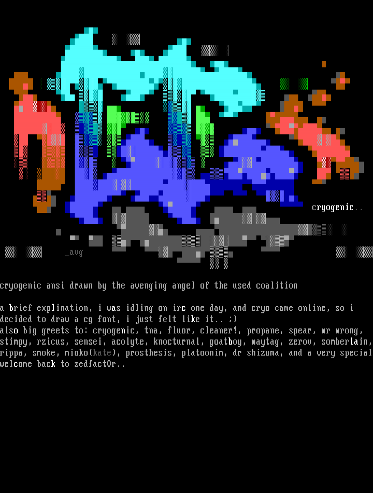 cryogenic ansi drawn by the avenging angel of the used coalition