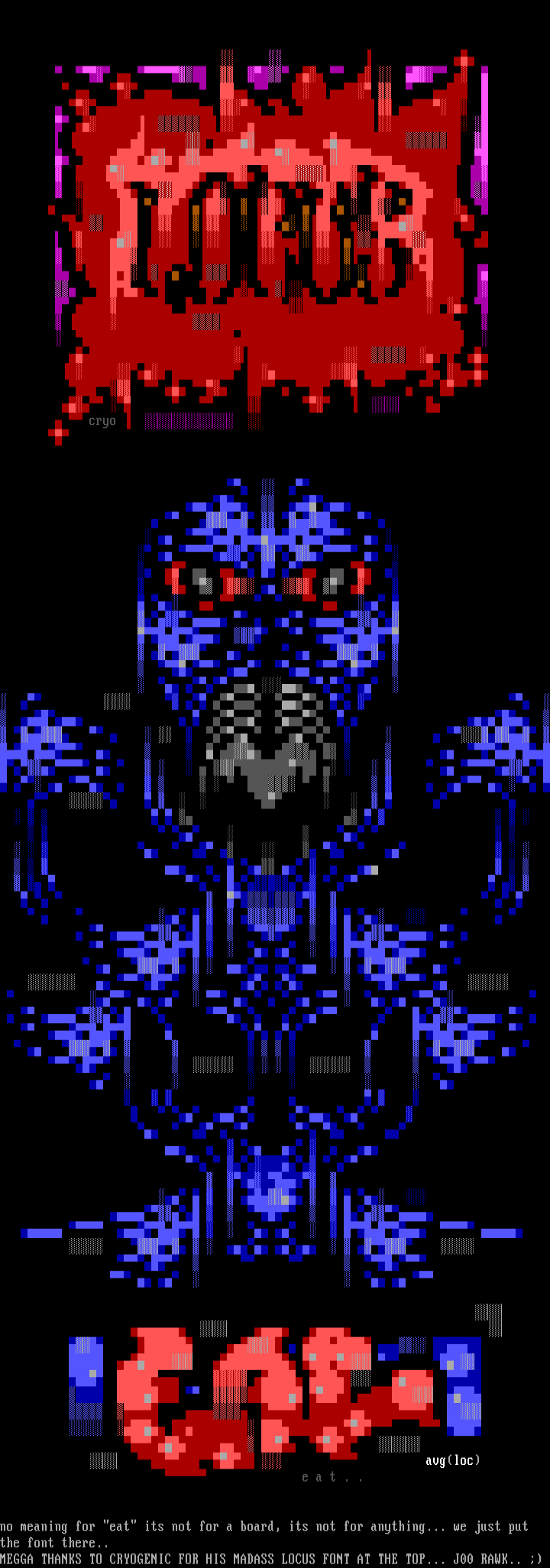 MEGGA THANKS TO CRYOGENIC FOR HIS MADASS LOCUS FONT AT THE TOP... J00 RAWK..