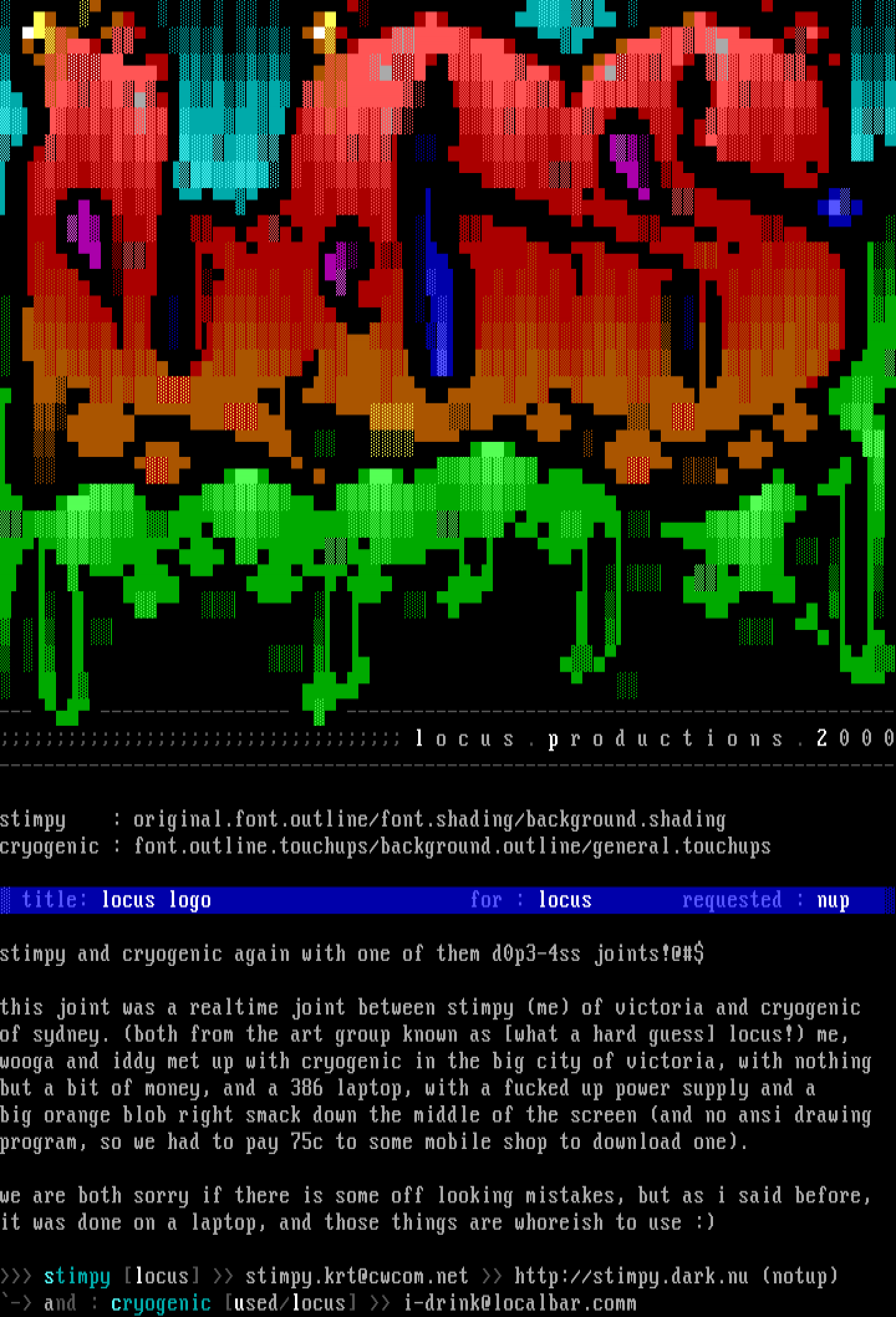 --- ----------------- ------------------------------------------------- l o c u s . p r o d u c t i o n s . 2 0 0 0--------------------------------------------------------------------------------