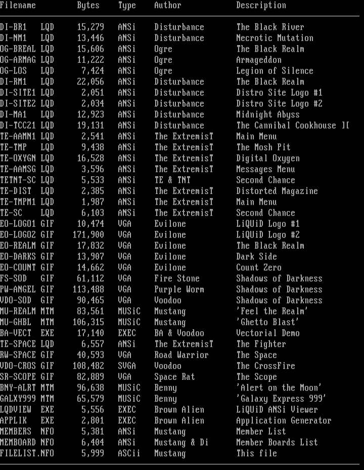 MEMBOARD NFO 6,404 ANSi Mustang Di Member Boards List