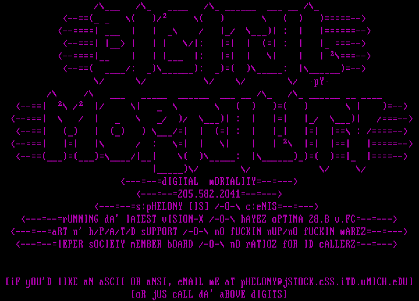 iF yOUD lIKE aN aSCII OR aNSI, eMAIL mE aT pHELONY@jSTOCK.cSS.iTD.uMICH.eDU
