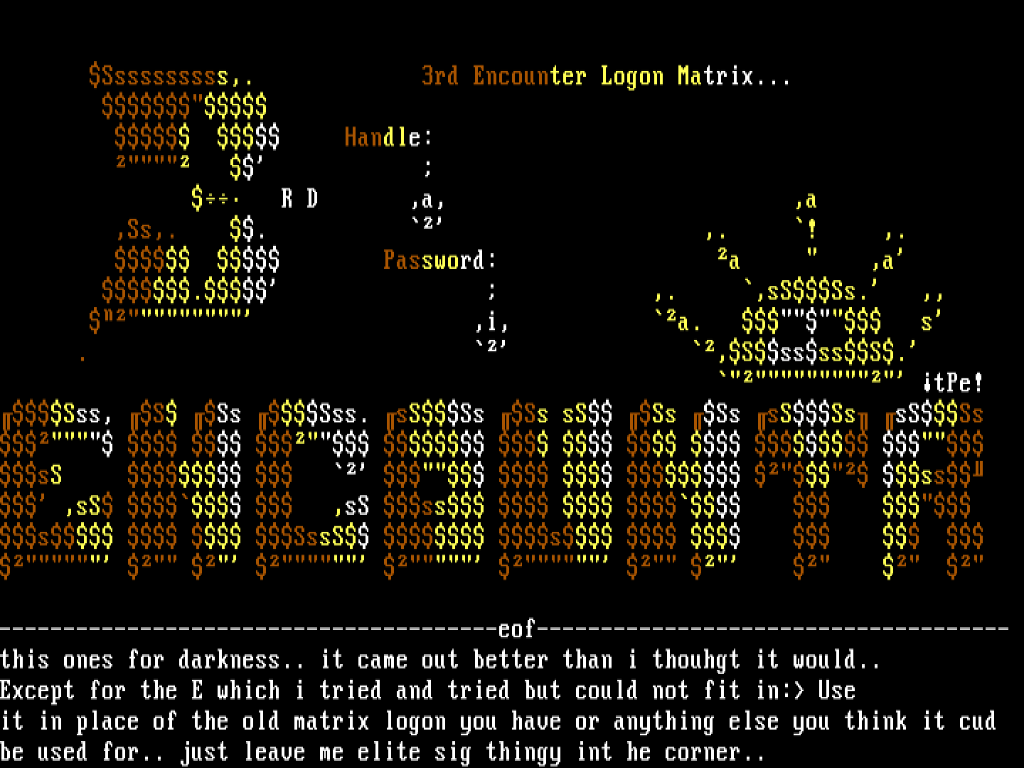 Ssssssssss,. 3rd Encounter Logon Matrix...