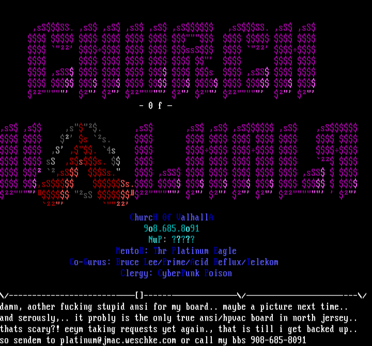 so sendem to platinum@jmac.weschke.com or call my bbs 908-685-8091