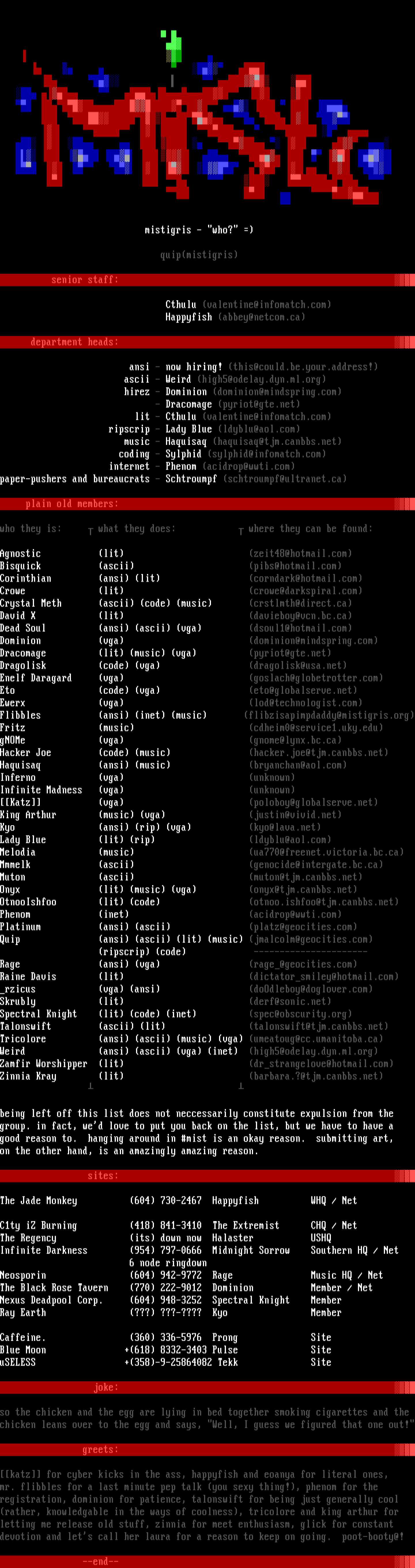 Mistigris June 1998 Member/sitelist by Quip / Cthulu
