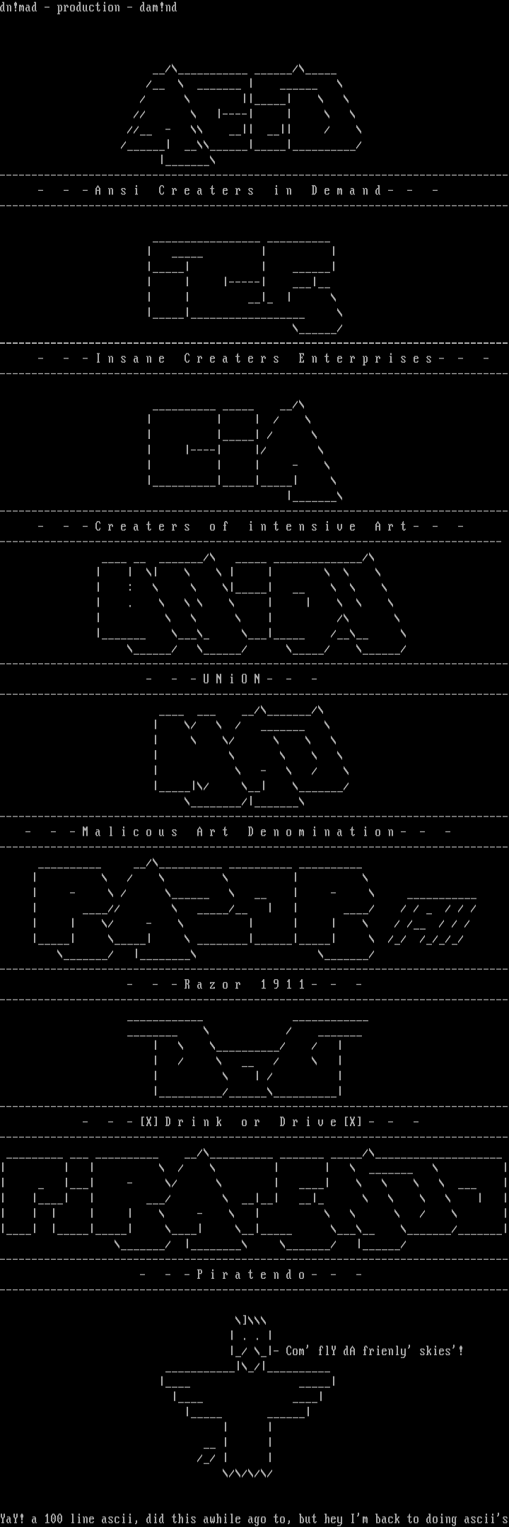 YaY! a 100 line ascii, did this awhile ago to, but hey Im back to doing asciis