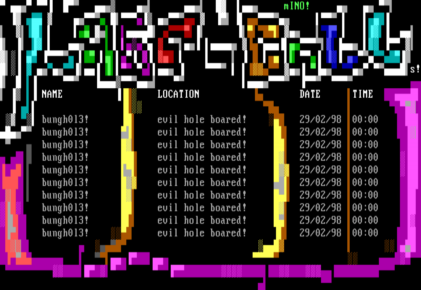bungh0l3! evil hole boared! 29/02/98 00:00