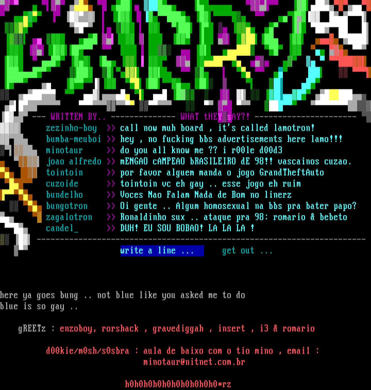 bungotron Oi gente .. Algum homosexual na bbs pra bater papo?