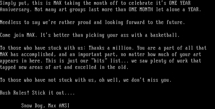 Simply put, this is MAX taking the month off to celebrate its ONE YEAR