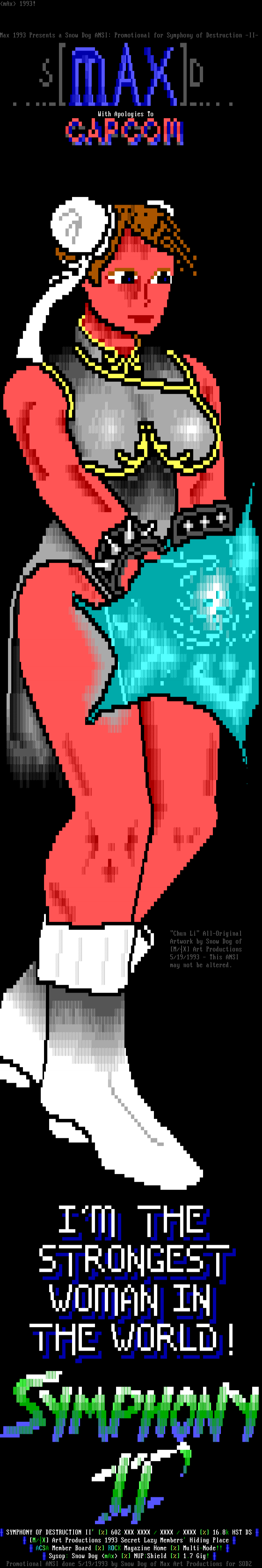 Promotional ANSI done 5/19/1993 by Snow Dog of Max Art Productions fo