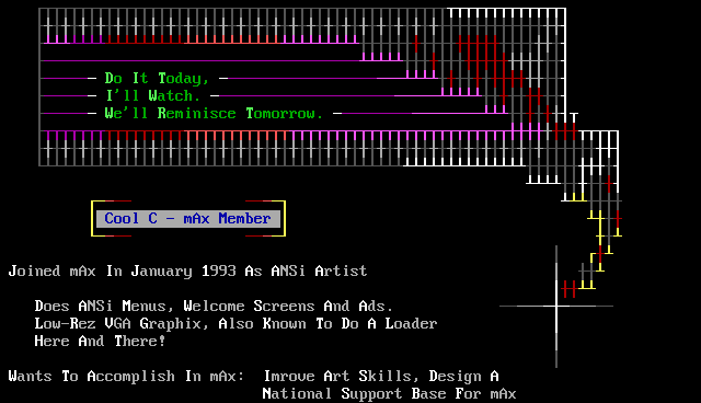 Joined mAx In January 1993 As ANSi Artist Does ANSi Menus, Welcome Screens A