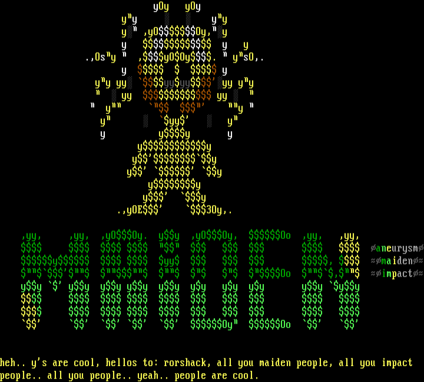heh.. ys are cool, hellos to: rorshack, all you maiden people, all you impact