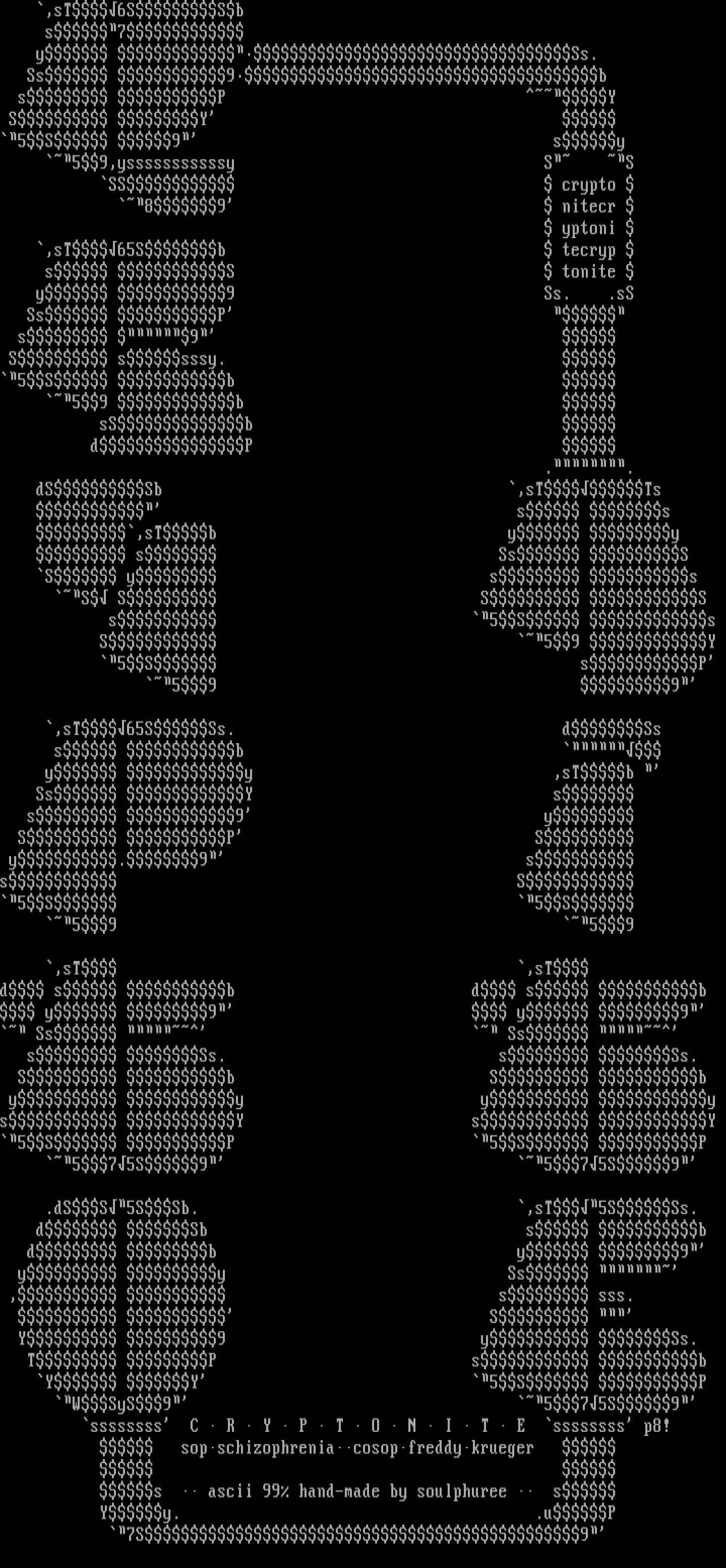 ssssssss C R Y P T O N I T E ssssssss p8!