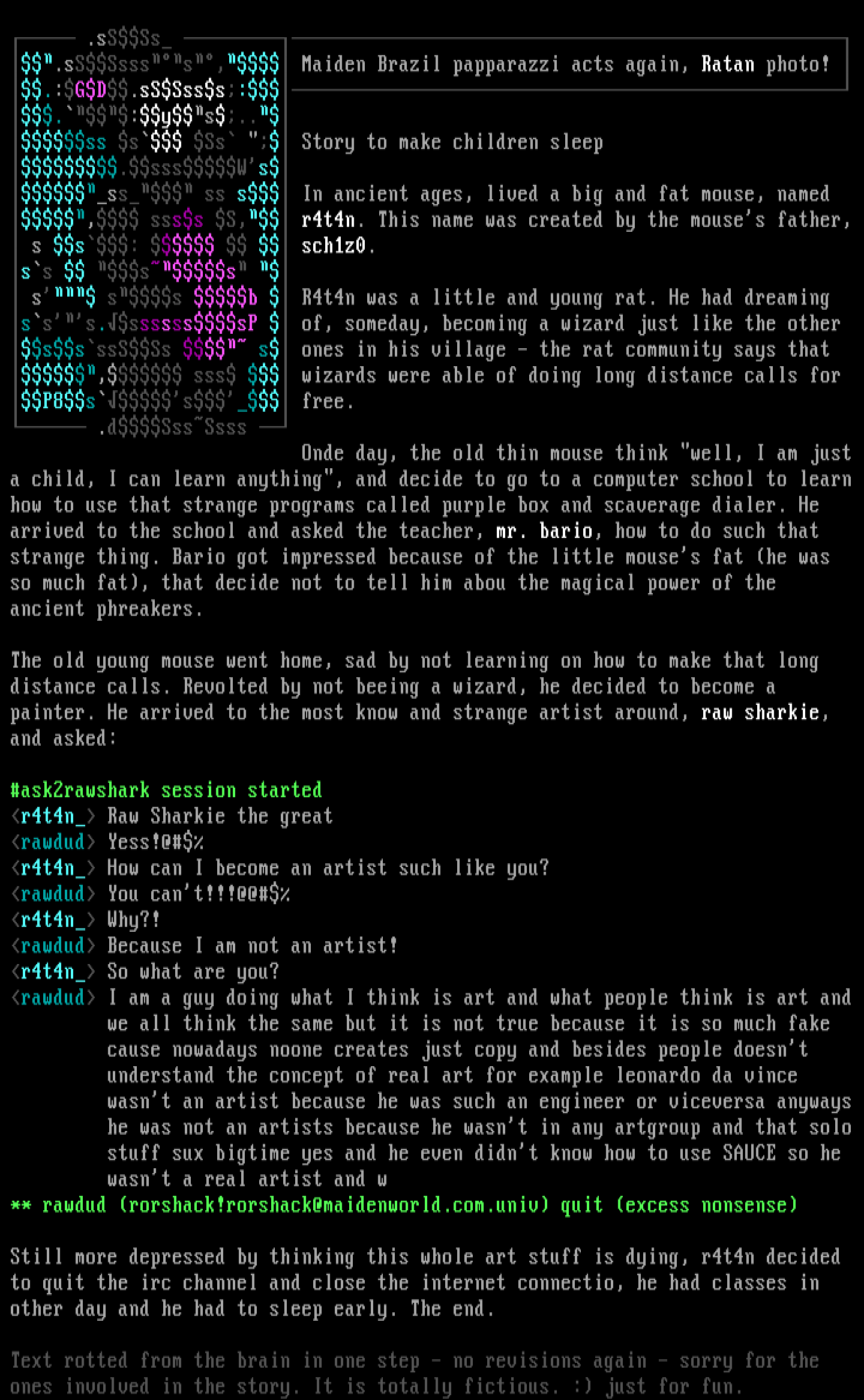 ** rawdud rorshack!rorshack@maidenworld.com.univ qu