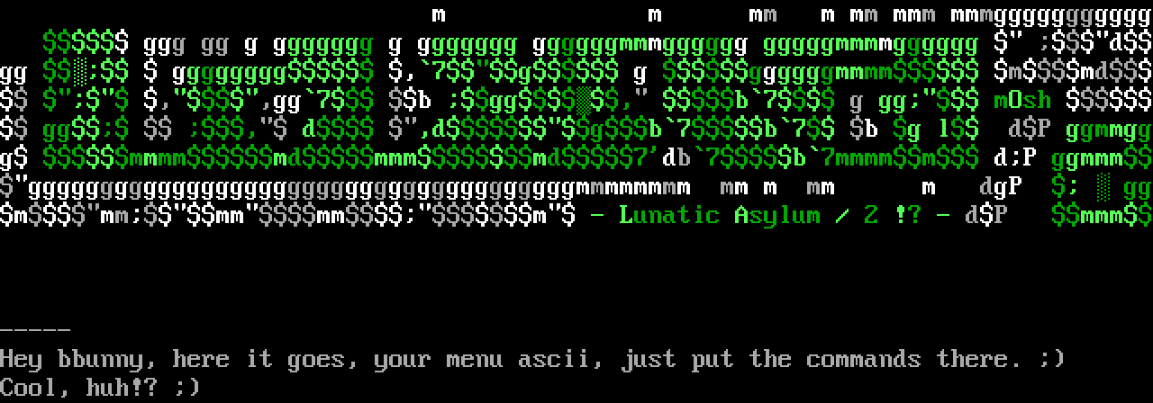 Hey bbunny, here it goes, your menu ascii, just put the commands there.