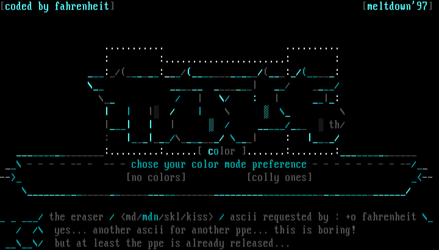 / the eraser / md/mdn/skl/kiss / ascii requested by : +o fahrenheit
