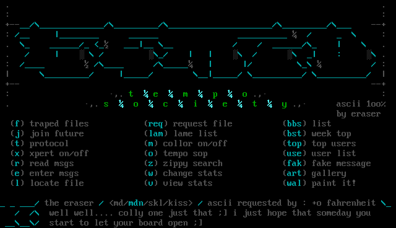 / the eraser / md/mdn/skl/kiss / ascii requested by : +o fahrenheit
