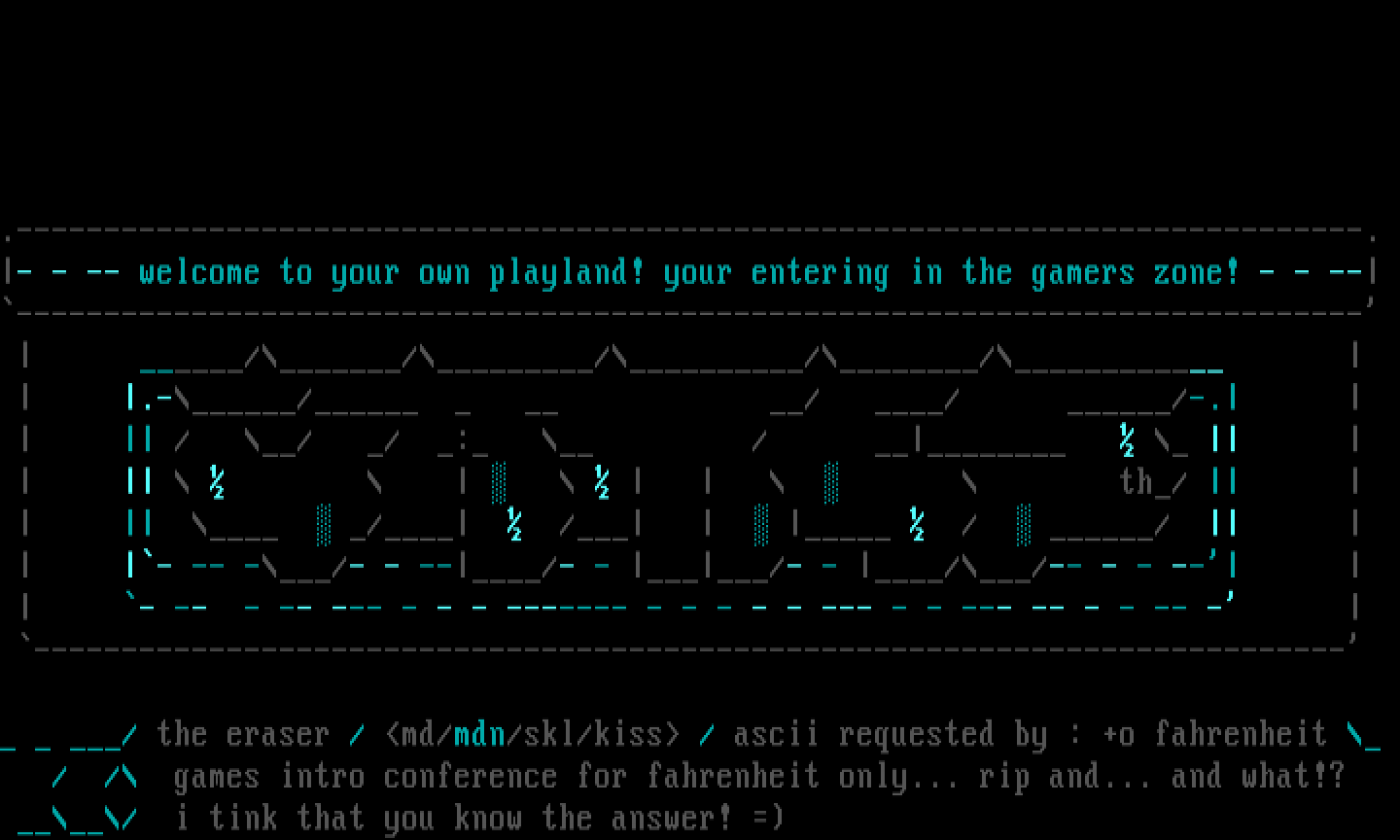 - - -- welcome to your own playland! your entering in the gamers zone! - - --