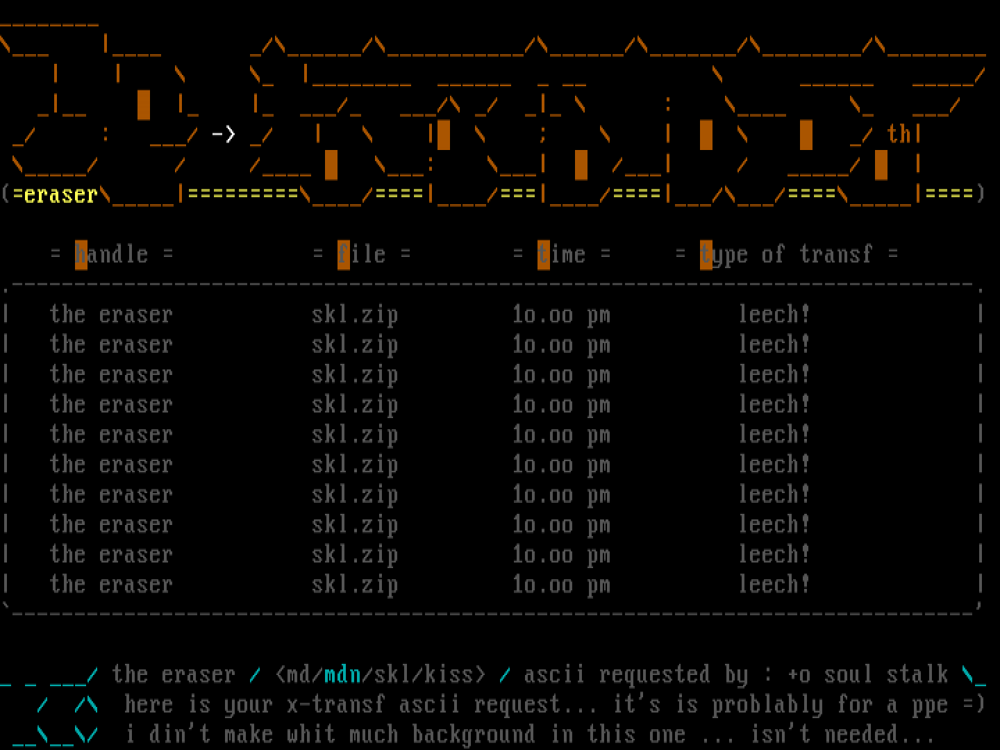 / the eraser / md/mdn/skl/kiss / ascii requested by : +o soul stalk