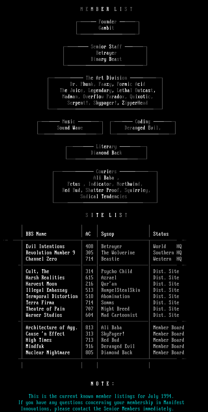 This is the current known member listings for July 1994.