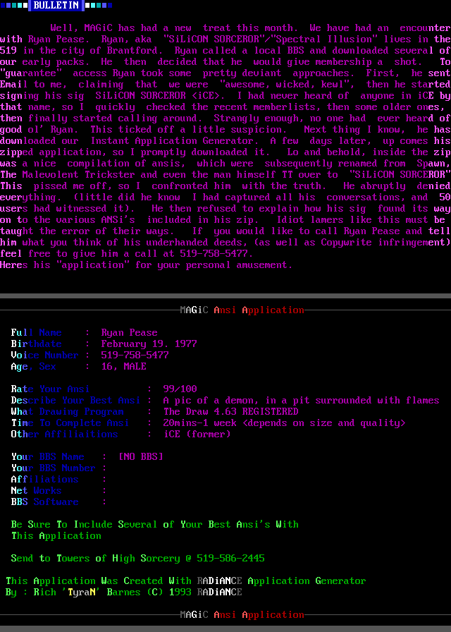 the city of Brantford. Ryan called a local BBS and downloaded seve