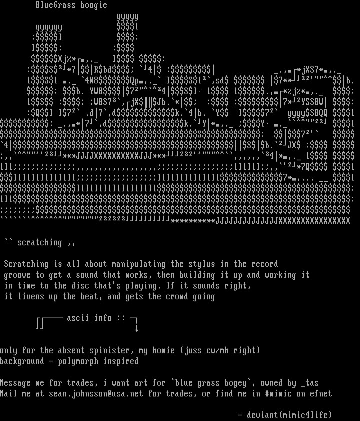 Mail me at sean.johnsson@usa.net for trades, or find me in mimic on efnet