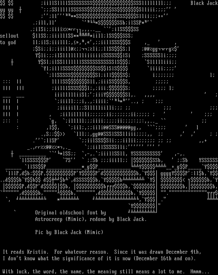 It reads Kristin. For whatever reason. Since it was drawn December 4th,